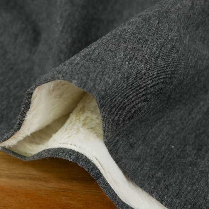 Le sweat molleton est un tissu tricoté qui se distingue par son épaisseur et son intérieur gratté, lui conférant une douceur exceptionnelle. Contrairement au French Terry, qui possède une structure en petites boucles sur l’envers, le molleton est brossé ou gratté pour apporter encore plus de chaleur et de confort.