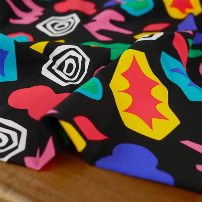 - Facile à coudre : une matière souple et agréable à travailler avec une surjeteuse ou une machine classique équipée d’une aiguille adaptée.