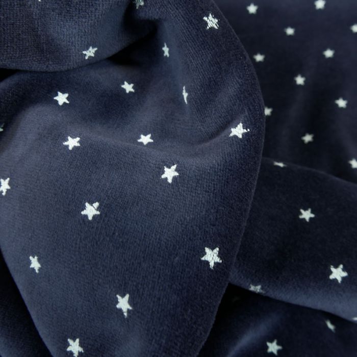 Jersey Velours et Nicky : Doux et extensibles, ces tissus jersey de velours sont parfaits pour des vêtements confortables comme des tenues de détente, des pyjamas ou des habits pour bébés.