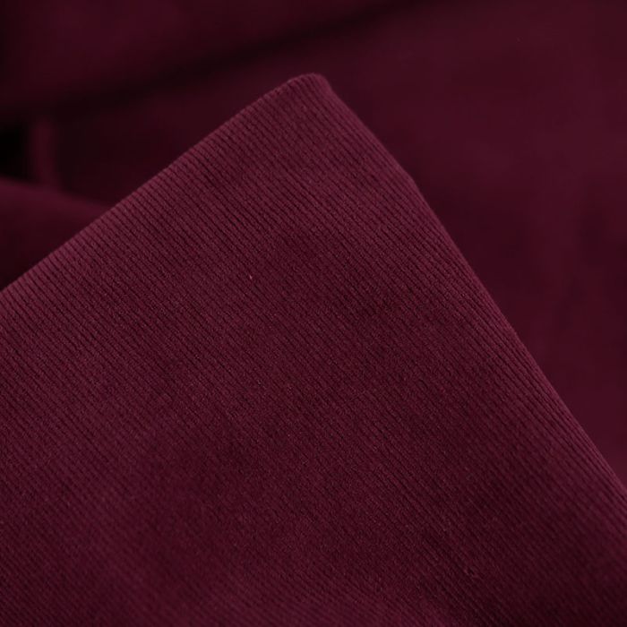 Velours côtelé : Apprécié pour sa texture en relief et ses côtes parallèles, il est parfait pour des vêtements structurés comme des pantalons ou des vestes. Son aspect rétro-chic en fait un choix incontournable pour les projets modernes et décontractés.