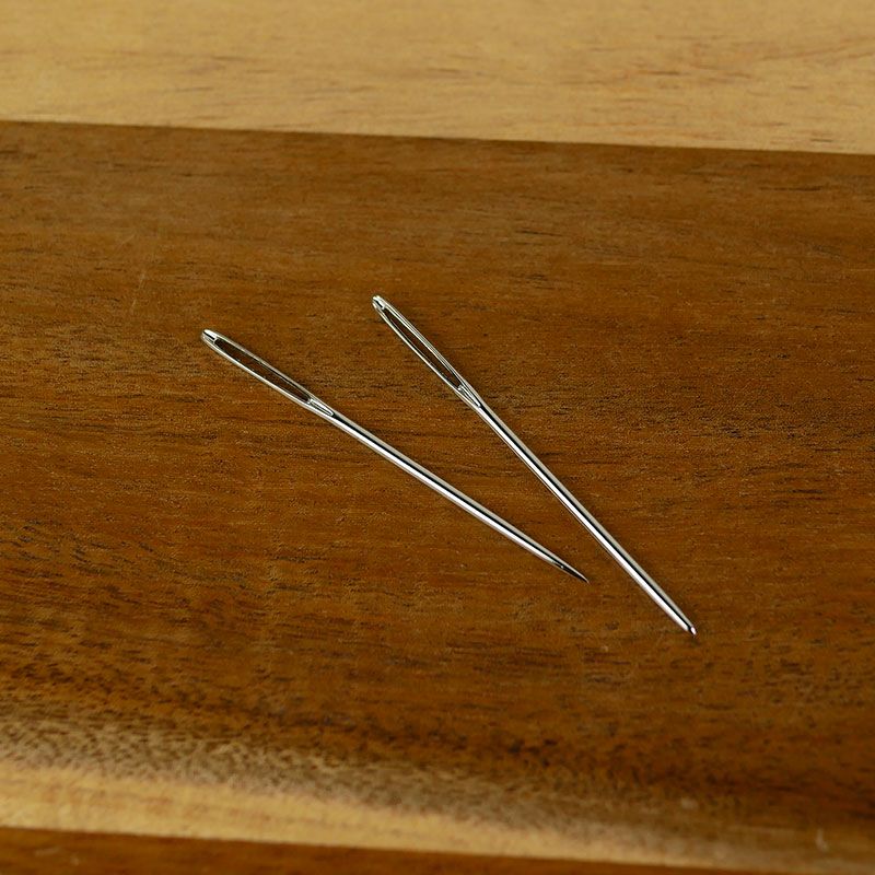 Set de 2 aiguilles en métal. Dotées d'un gros chas, elles vous permettent d'enfiler avec facilité tous types de fils en laine.