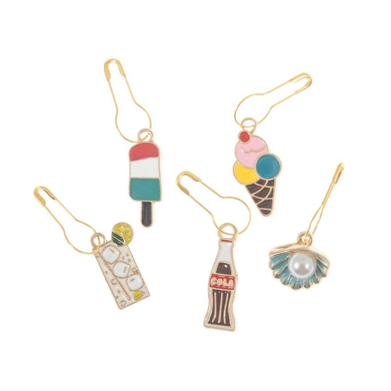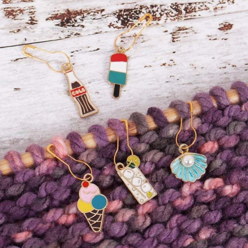 Lot de 5 marqueurs de mailles en métal, sur le thème de l'été.