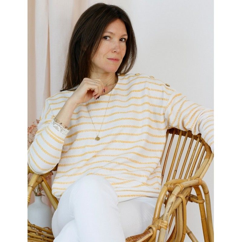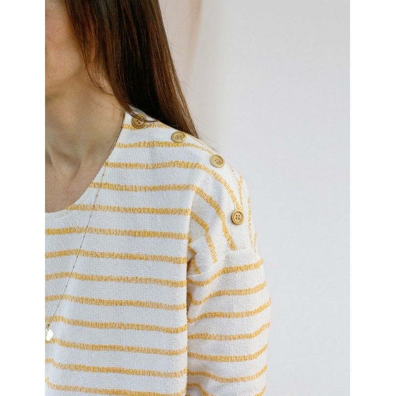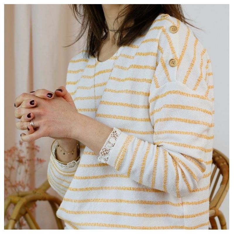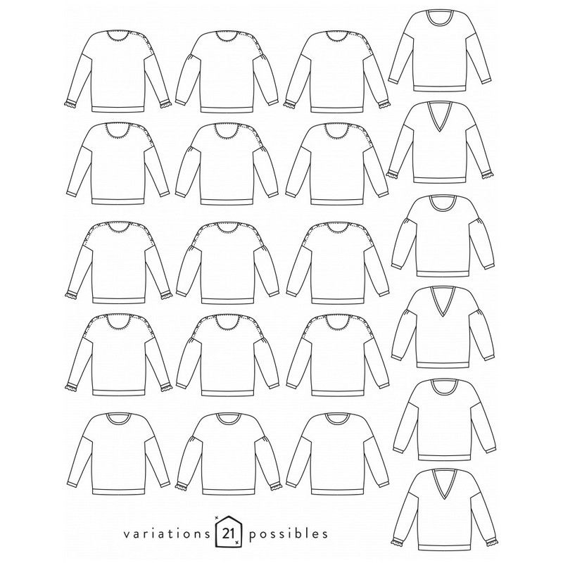 On vous présente Horizon, un sweat ample et confortable, doté d'emmanchures basses. Ce modèle a l'avantage de proposer une multitude de finitions : des manches droites ajustées ou amples, avec de la dentelle ou non, une encolure ras-du-cou, ronde dégagée ou en V, etc.