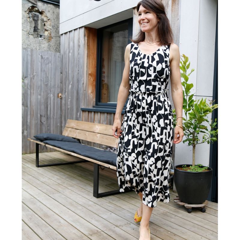 Le patron Frisson d’Atelier Scammit vous propose de réaliser une robe dos nu féminine et ajustable, disponible du 34 au 48.