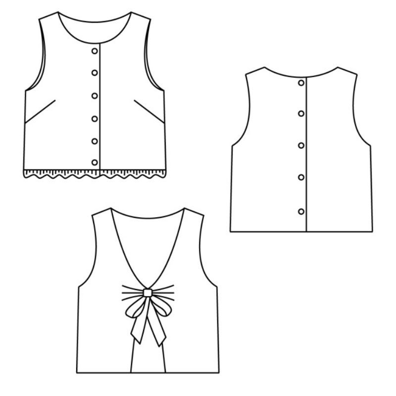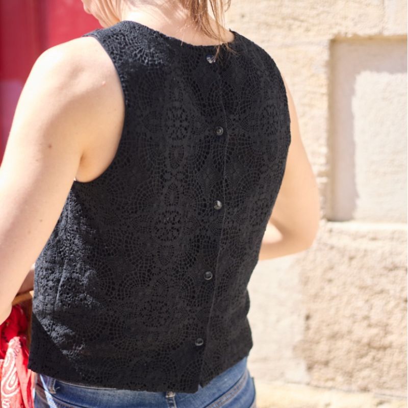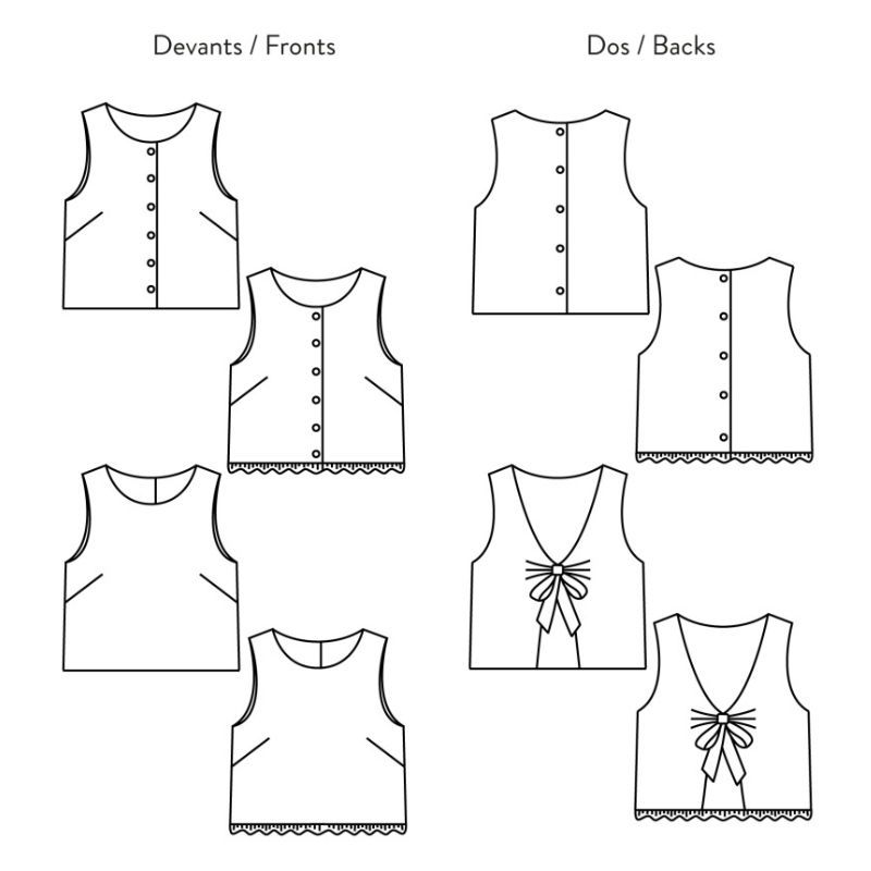 Adoptez le style intemporel et féminin avec Archipel, le top sans manches parfait pour la mi-saison et l’été. Proposé du 32 au 52, ce modèle se décline en 6 variations, à réaliser avec ou sans volant, noué ou boutonné devant ou dos, et même en version réversible grâce à sa doublure complète.