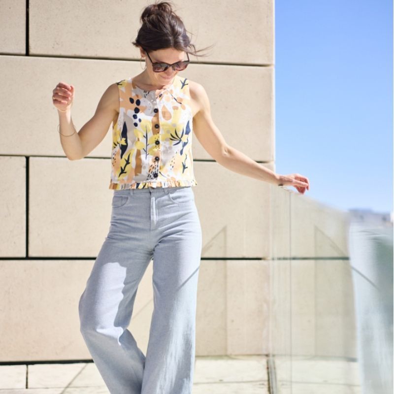 Avec ses finitions impeccables, Archipel est accessible aux débutants grâce à la vidéo tutorielle complète. Vous apprendrez à doubler un top sans couture apparente (technique du fourreau), à coudre des pinces, une patte de boutonnage et à ajouter un joli volant froncé.