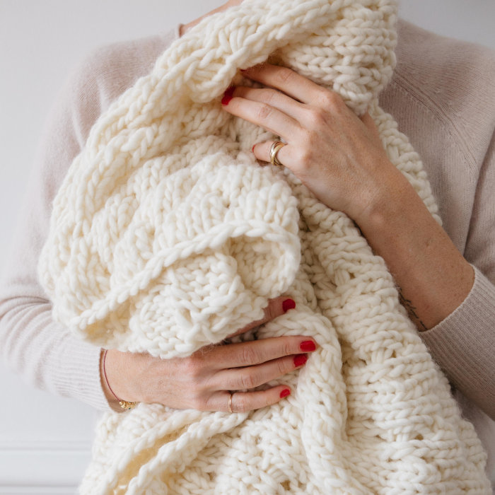 Un magnifique plaid texturé qui se tricote rapidement avec de grosses aiguilles