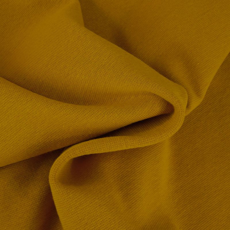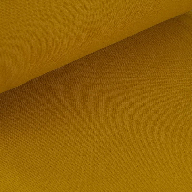 Bord-côte tubulaire uni, certifié Oeko-Tex, dans une teinte chaleureuse jaune ocre. Idéal pour des finitions esthétiques et confortables.