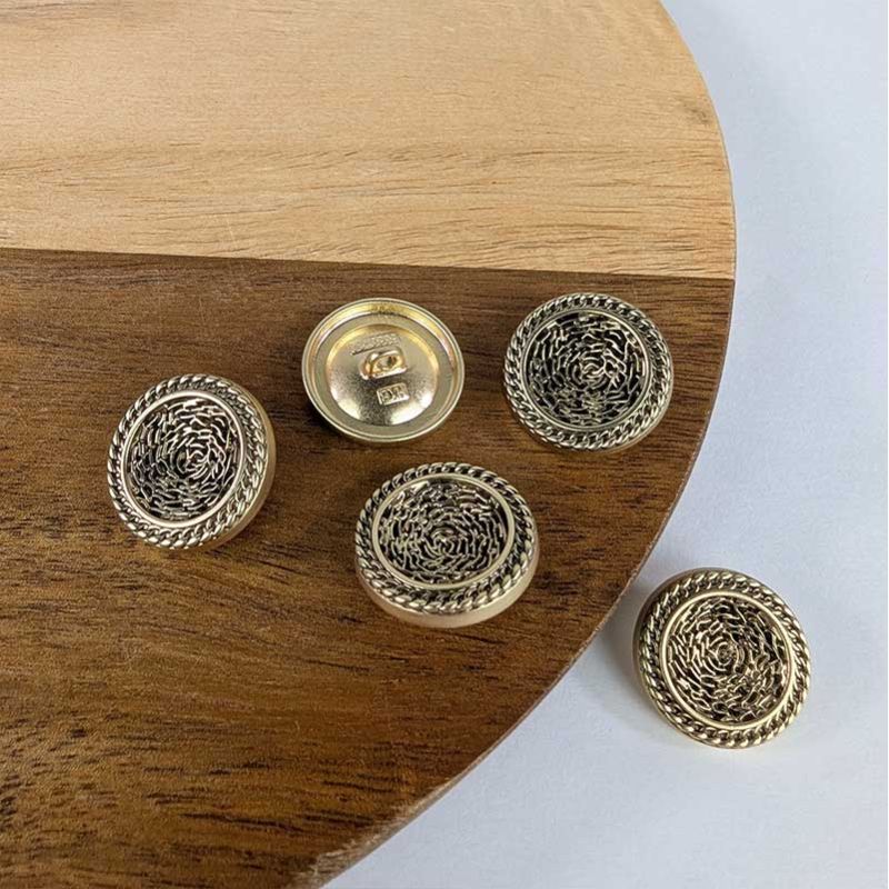 Bouton en métal couleur laiton doré, idéal à coudre sur vos boutonnières de vestes, tailleurs, blazers, pantalons, sacs, ...