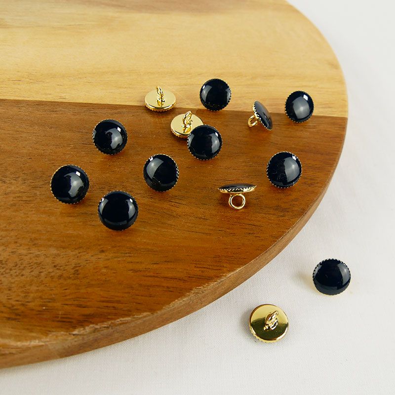 Apportez une touche classique et élégante à vos créations avec ce bouton à pied en métal doré et son émaillage bleu marine profond.