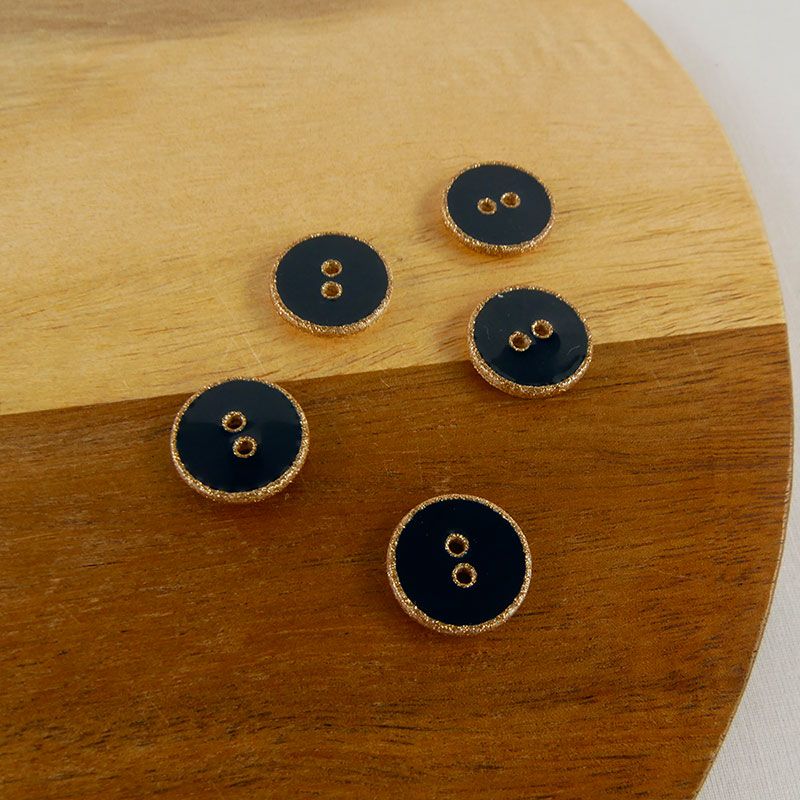 Avec son émaillage bleu marine profond et son rebord doré scintillant, il est idéal pour personnaliser vos créations. Fabriqué en France, ce bouton combine style et qualité.