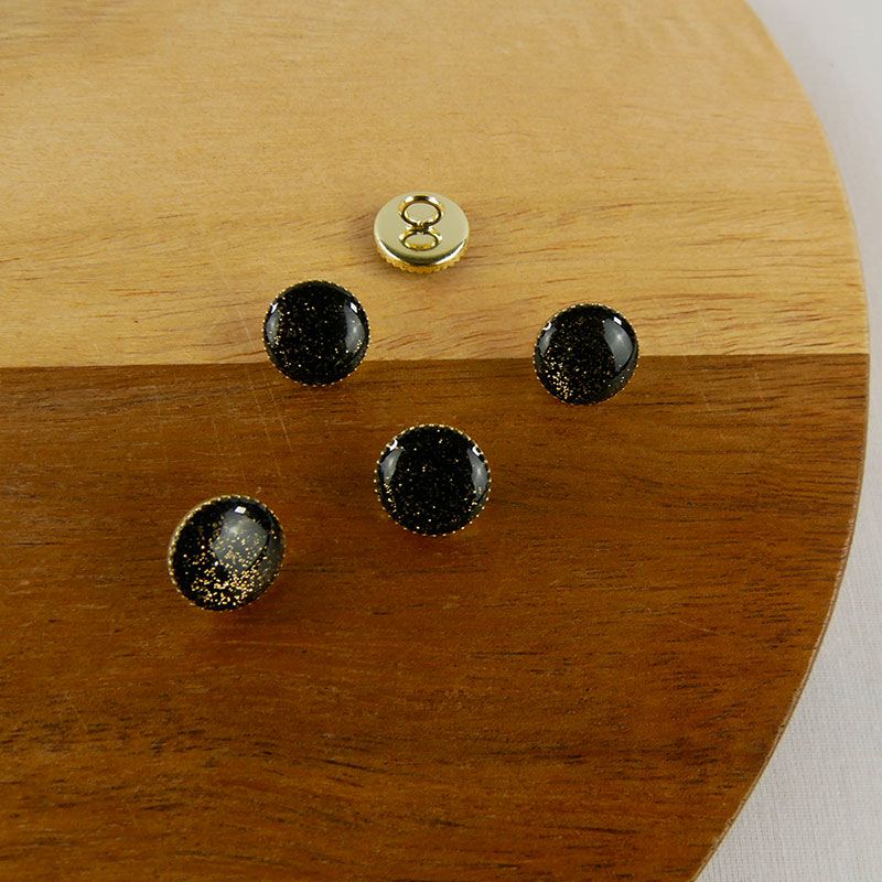 Apportez une touche de sophistication à vos créations couture avec ce bouton noir à paillettes dorées.