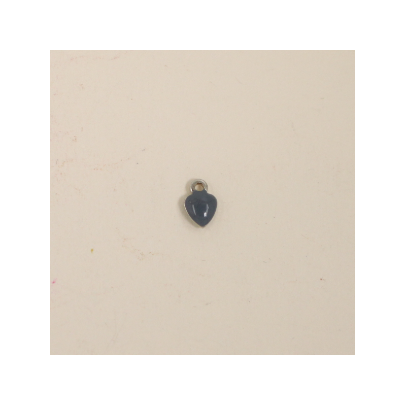 Breloque émaillée coeur 7mm gris x1