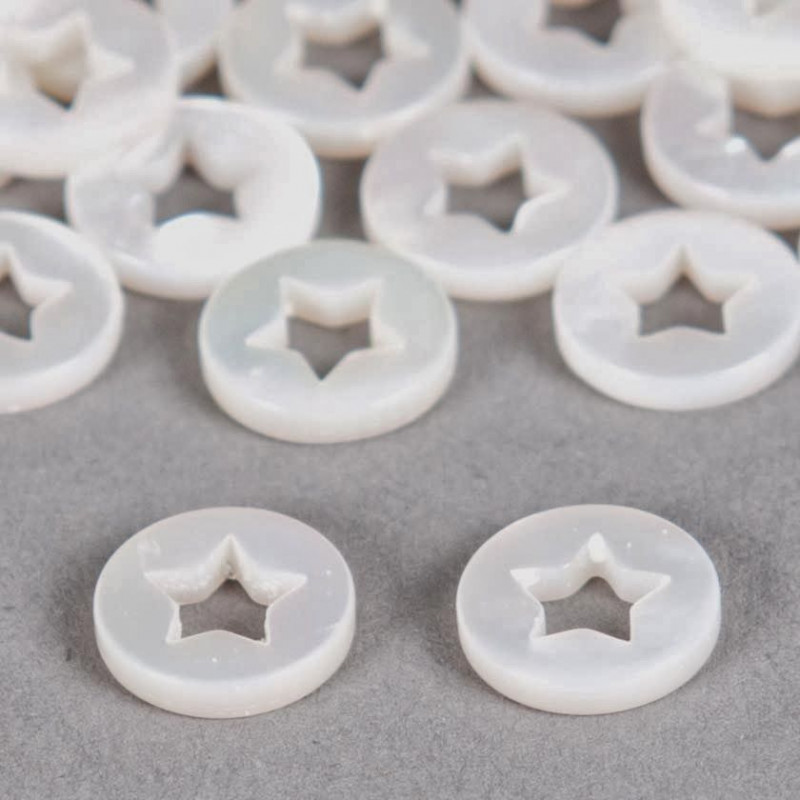 Pendentif nacre anneau à coeur étoile 10mm blanc naturel x1