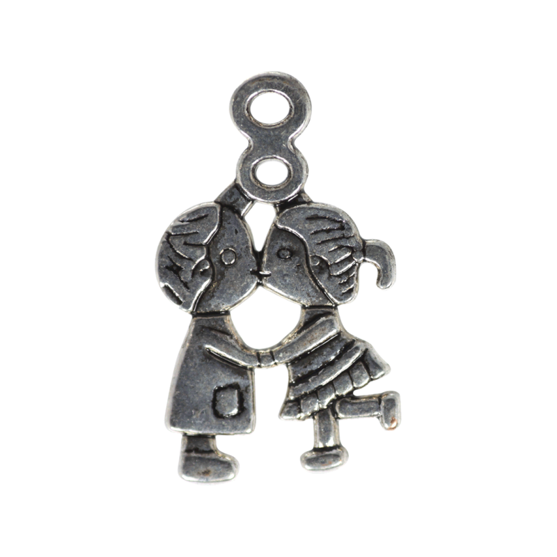 Breloque bisou d'enfants 27mm argent vieilli x1