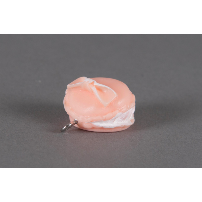 Optez pour une note féminine et gourmande avec cette breloque macaron rose à la crème, agrémentée d’un délicat nœud.