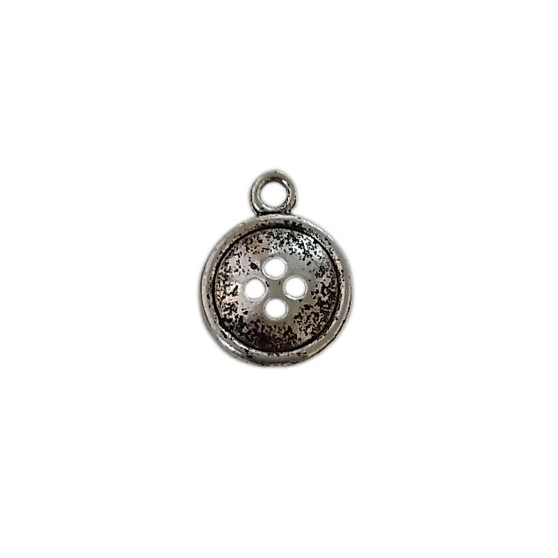 Breloque bouton rond 4 trous 13mm argent x1
