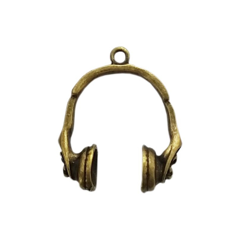Breloque écouteur en métal 19mm bronze x1