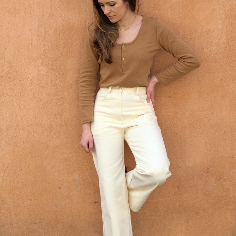 Oxane est un patron de couture pour pantalon femme, disponible de la taille 34 à 48.