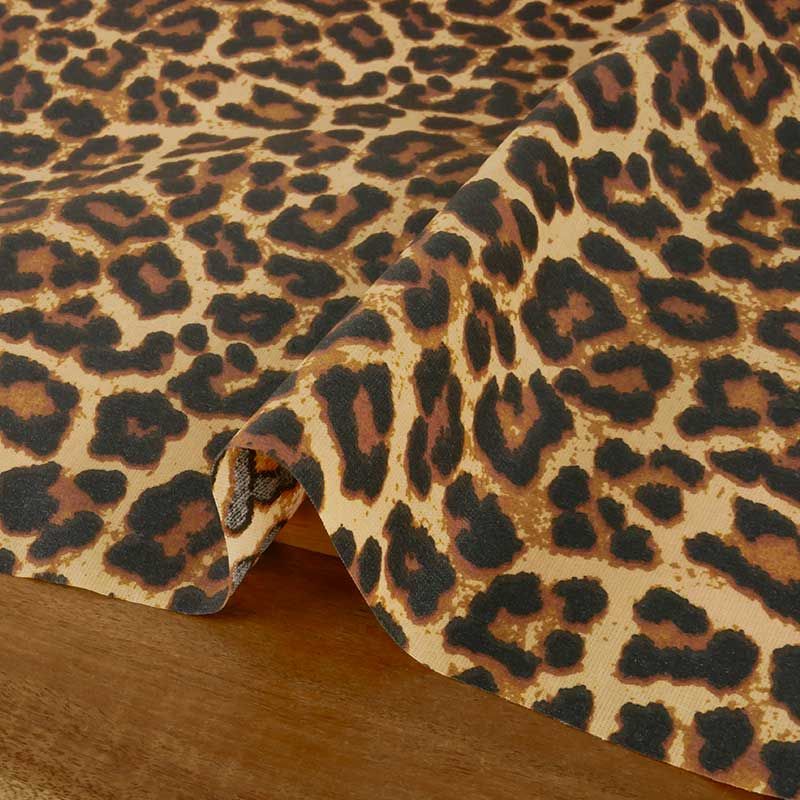 Tissu coton enduit léopard - beige x 10 cm