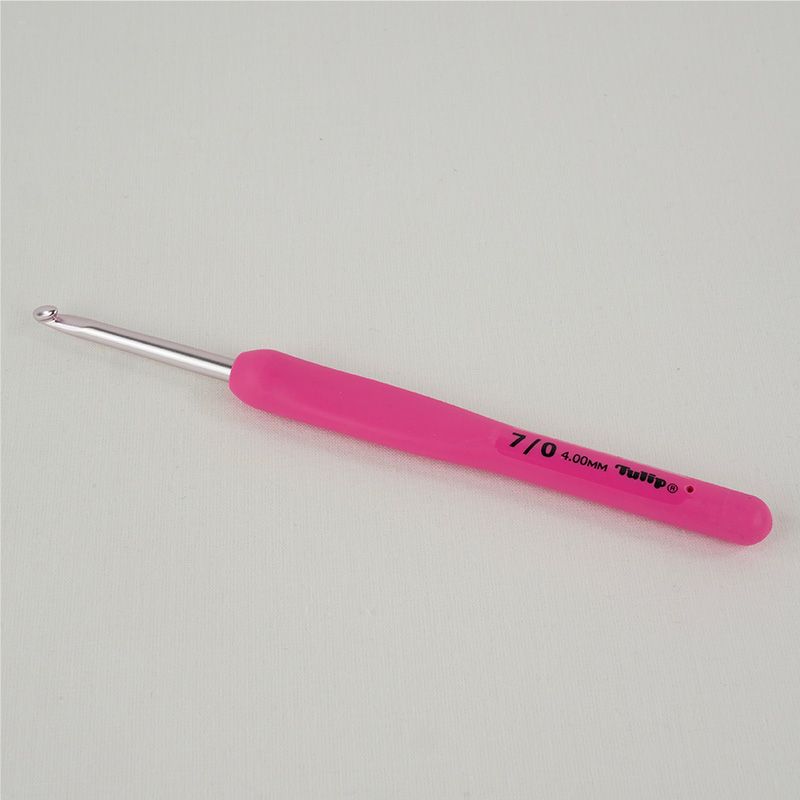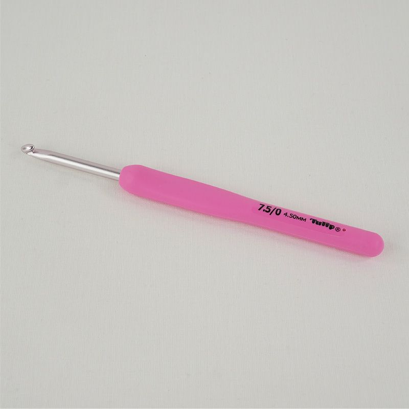 Son manche en silicone souple épouse la forme de la main pour un travail fluide et sans fatigue, même lors de longues sessions de crochet. Sa pointe en aluminium rouge mat favorise un glissement parfait des mailles et réduit la fatigue oculaire en évitant les reflets gênants sous la lumière.
