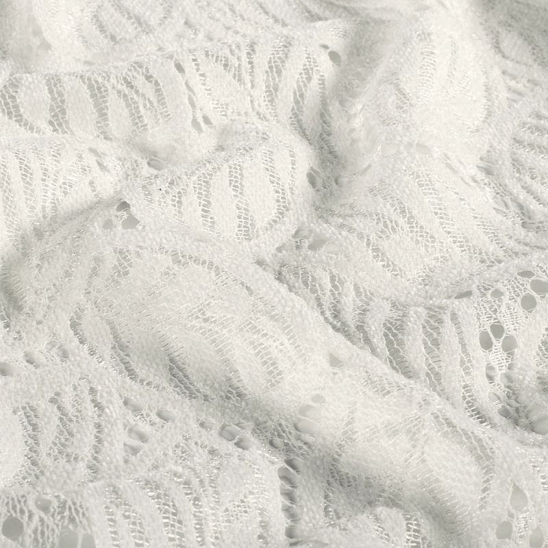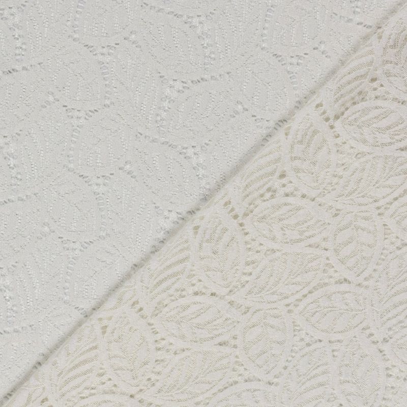 Tissu dentelle velours chenille feuillage - écru x 10 cm