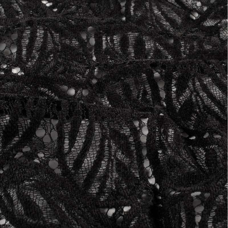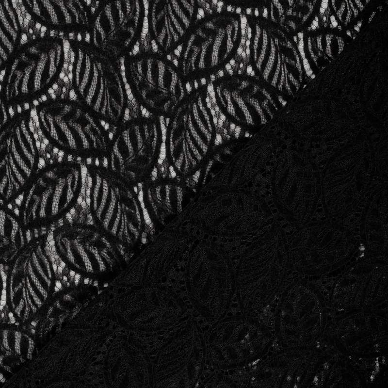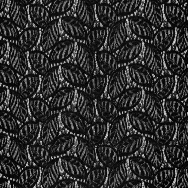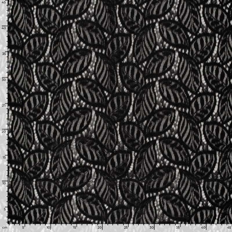 Tissu dentelle velours chenille feuillage - noir x 10 cm