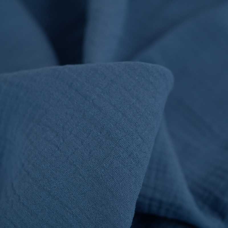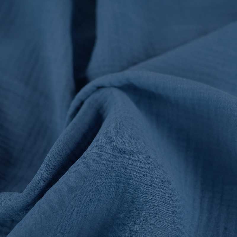 La double gaze est un tissu constitué de deux fines couches de gaze, cousues ensemble par de petits points invisibles. Joli drapé léger et agréable bleu.