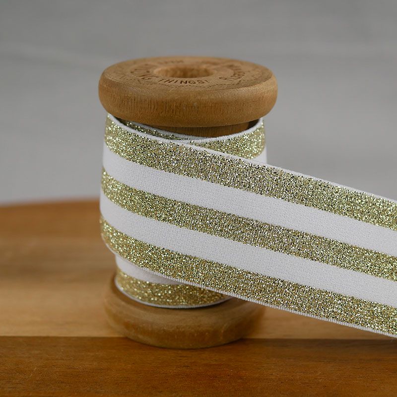 Élastique rayures lurex doré 40 mm - blanc x 10 cm