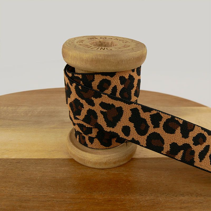 Pour des looks Graou, optez pour cet amusant élastique. Beige et marron, à motifs léopard, ce ruban élastique est un choix original et tendance, pour vos créations.