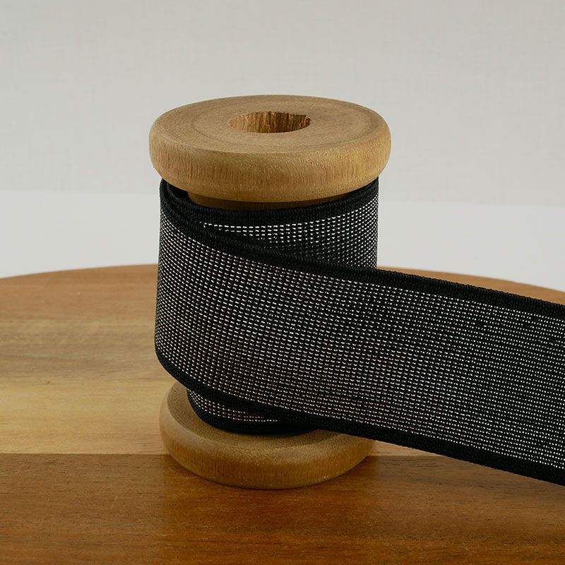 Apportez une touche brillante et élégante à vos créations avec ce ruban élastique extensible au tissage lurex métallisé argenté.