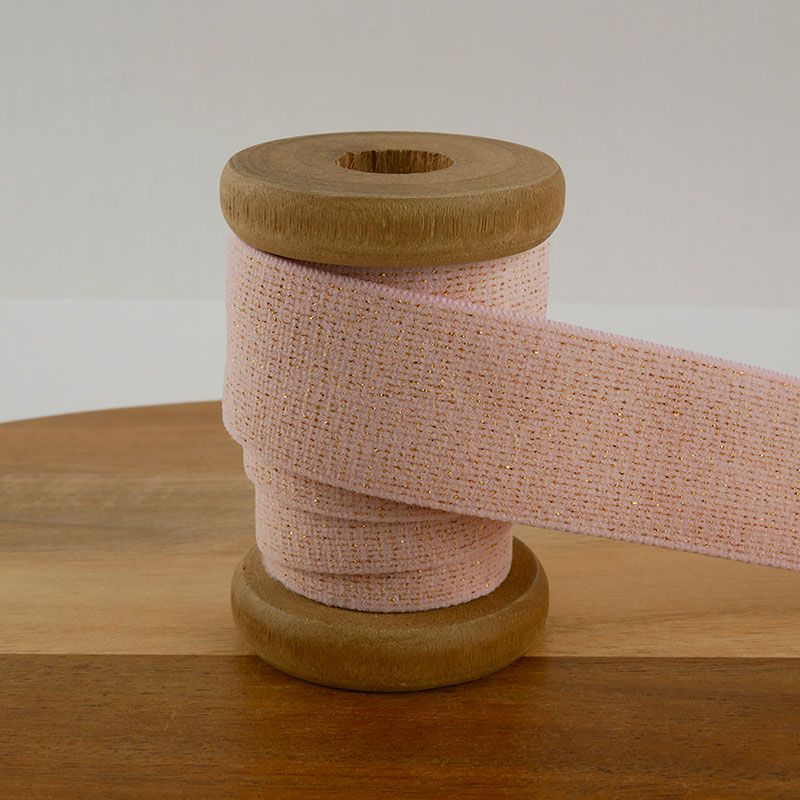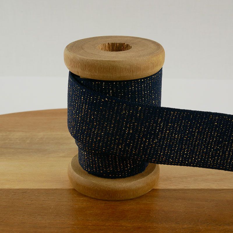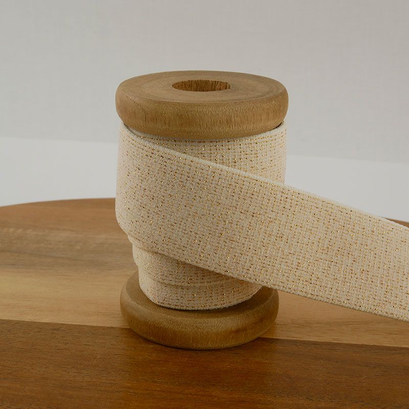 Ajoutez une touche scintillante à vos projets couture avec ce ruban élastique plat extensible, rehaussé d'un tissage lurex métallisé doré.