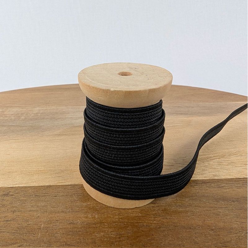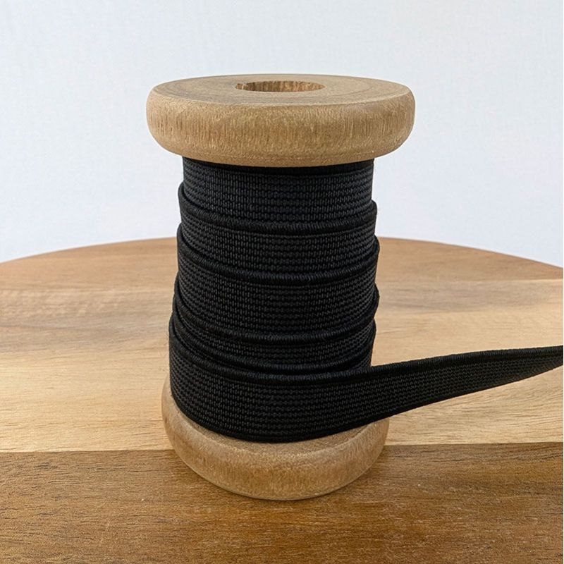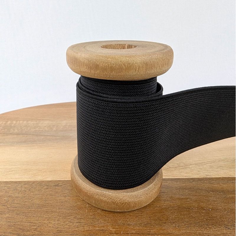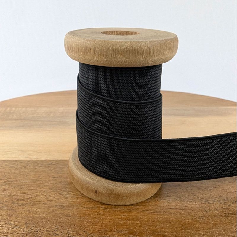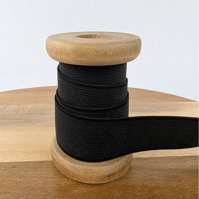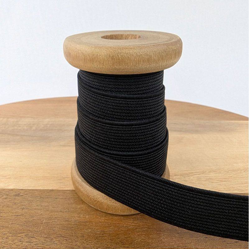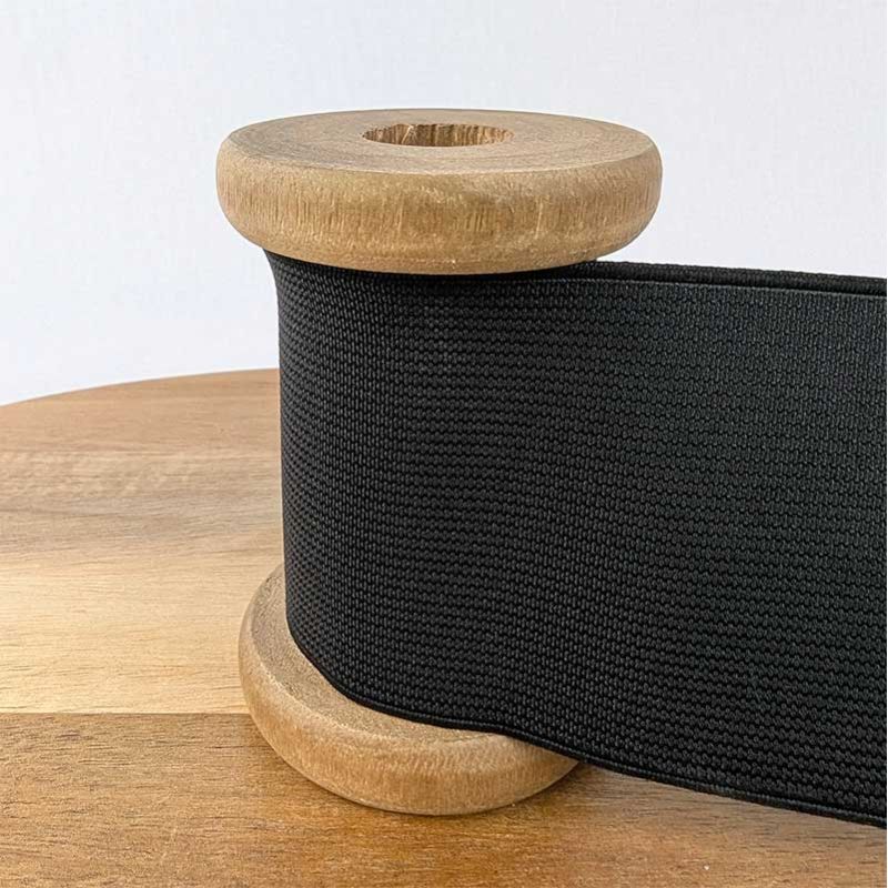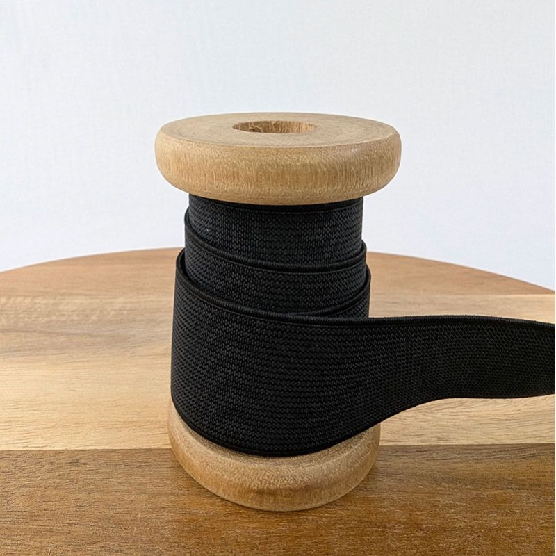 Élastique plat côtelé de couleur noire du 3 au 60 mm.