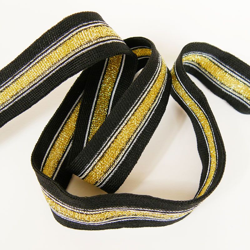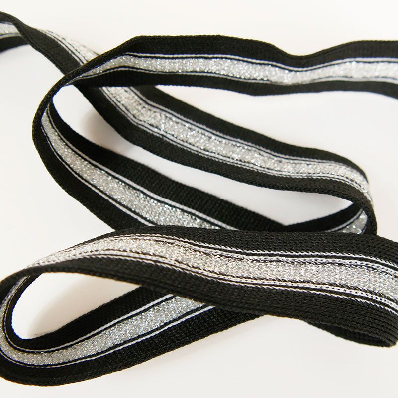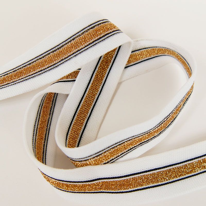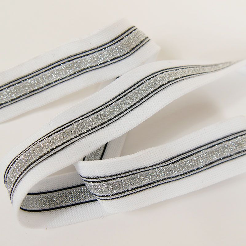 Ruban en jersey maille élastique de 25 mm à rayures bicolores lurex.