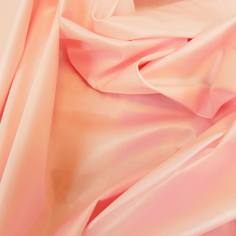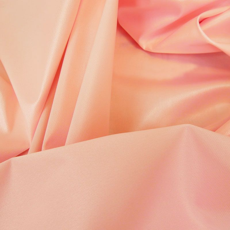 Tissu en maille interlock imperméable souple de couleur rose clair nacré.