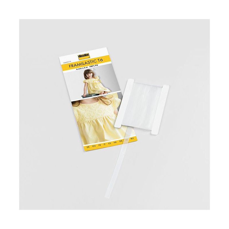 Rendez vos coutures stretch impeccables : Framilastic est une bande élastique transparente (6 mm ou 9 mm) qui se coud directement dans la couture pour froncer, stabiliser ou renforcer tous les tissus extensibles.