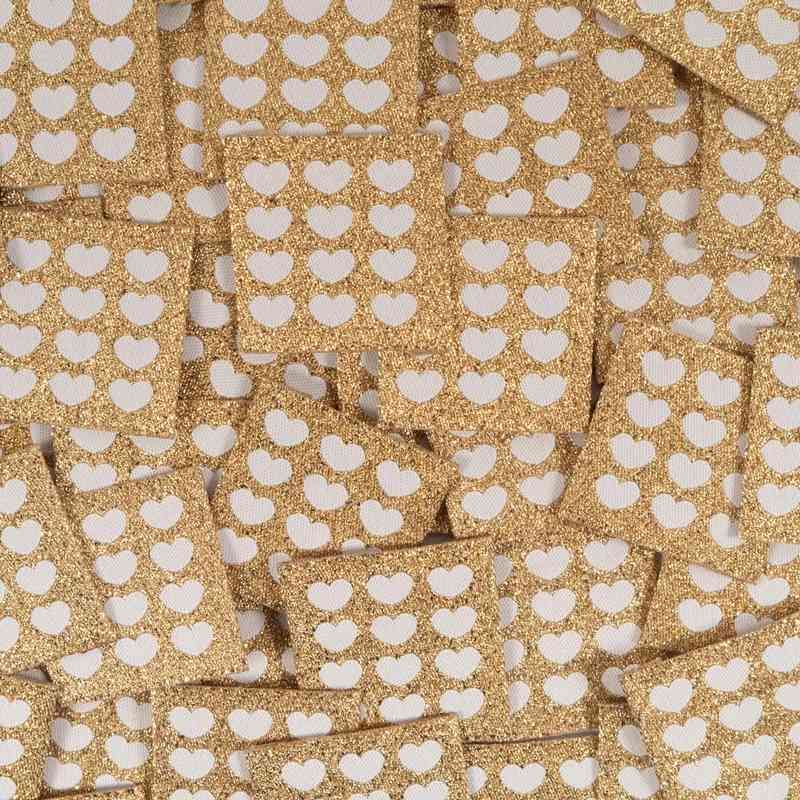 Très jolies étiquettes au format carré, tissées à l'aide de fils métallisés dorés, pour un rendu scintillant et lumineux.