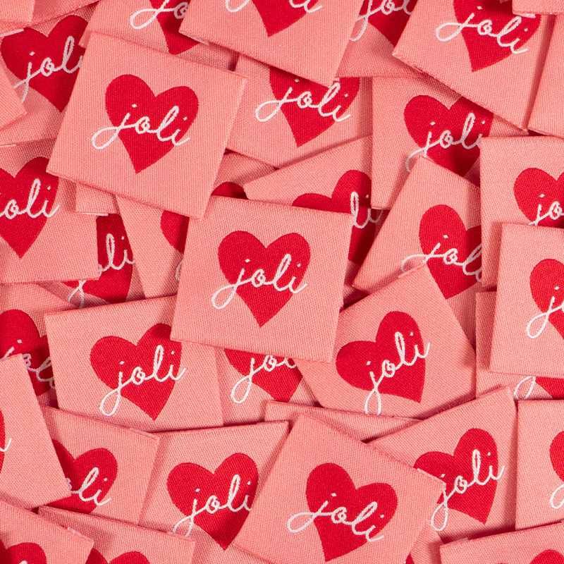 Tissées de rose et de rouge, ces étiquettes au format carré, seront parfaites pour personnaliser vos créations et les signer d'un "joli" !
