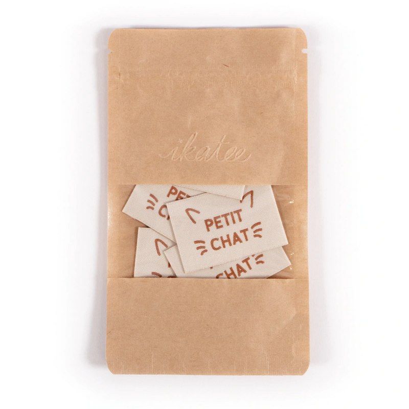 Lot de 5 étiquettes écrues, ornées d'une adorable inscription "Petit chat" de couleur noisette. Facile à coudre, elles seront le petit + de douceur pour vos créations.