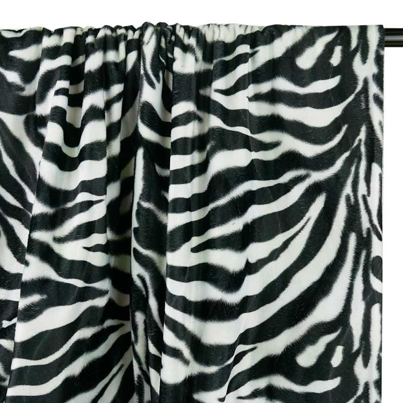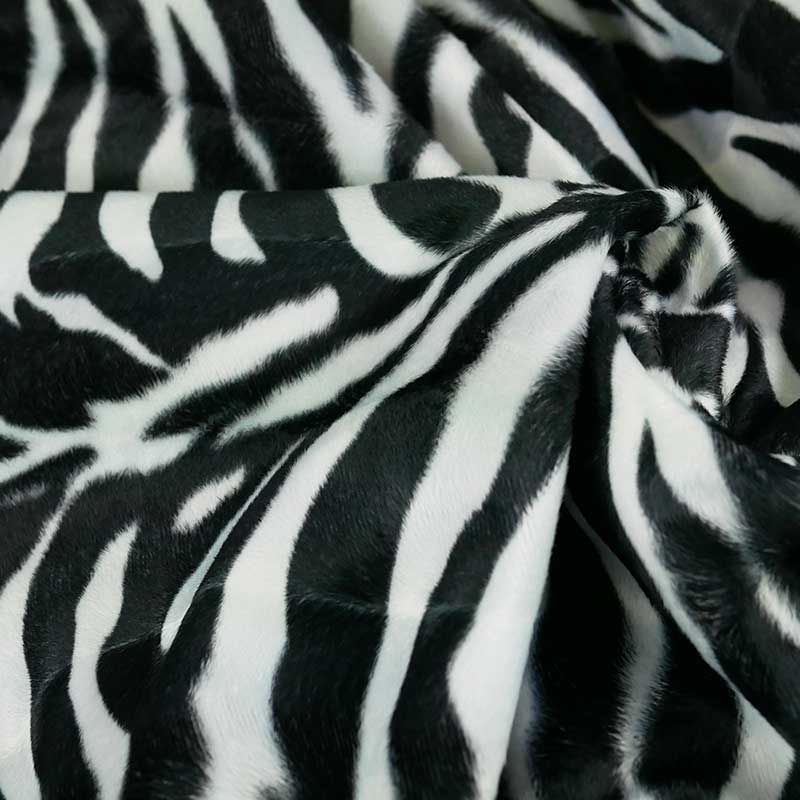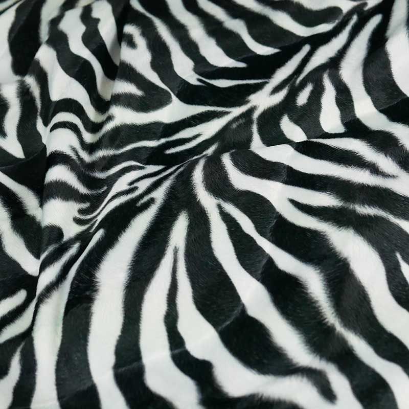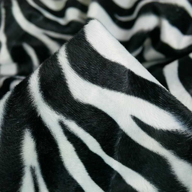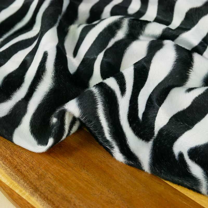 Optez pour ce velours très original, recouvert d'un imprimé zébré. Noir et blanc cassé, ce velours est doté de poils courts, à la façon d'un tissu en fausse fourrure.
