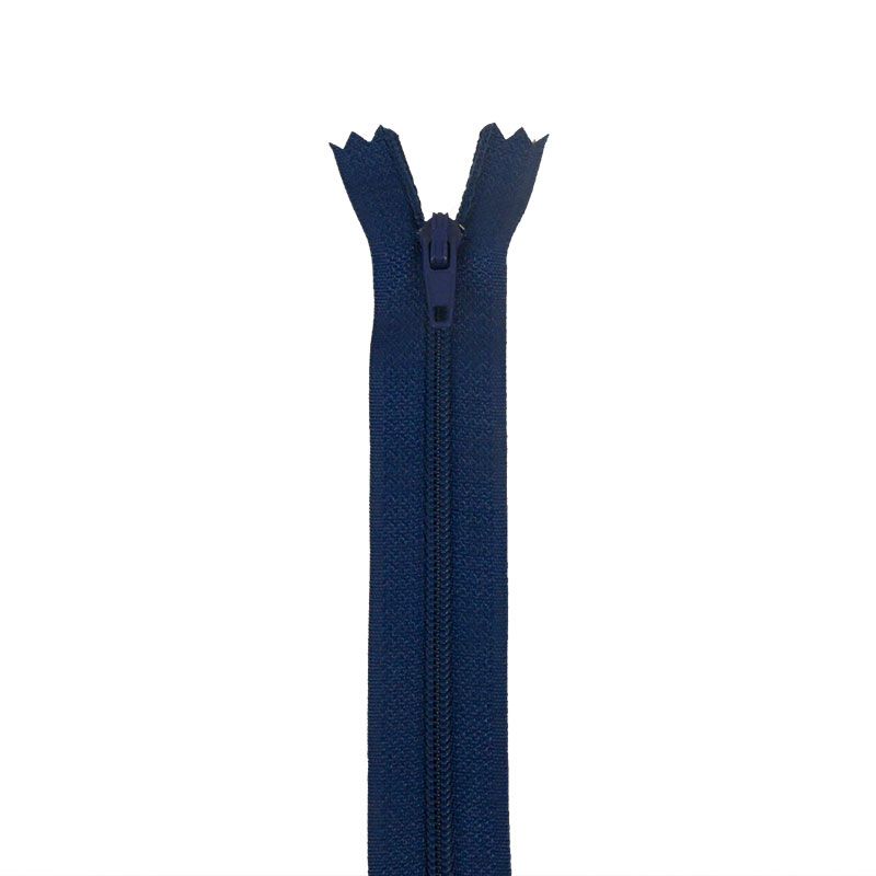 Apportez une finition discrète et élégante à vos projets couture avec cette fermeture à glissière nylon fine en teintes de bleu.