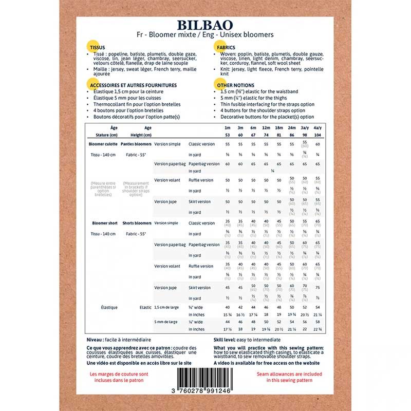 Bilbao - patron Bloomer / short - Ikatee