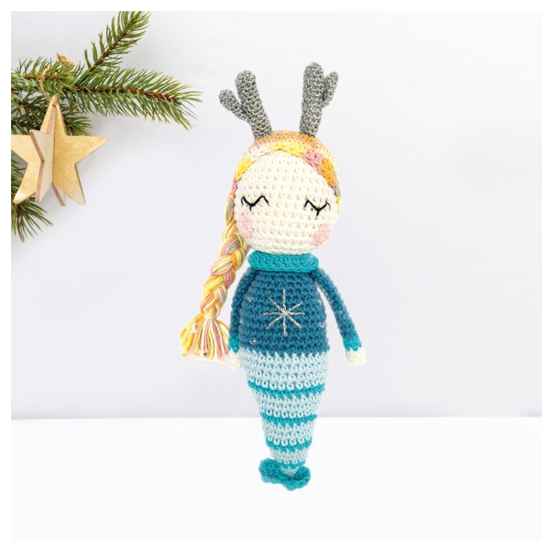 Voici les éléments nécessaires pour crocheter cette petite sirène merveilleuse de 22 cm de hauteur.