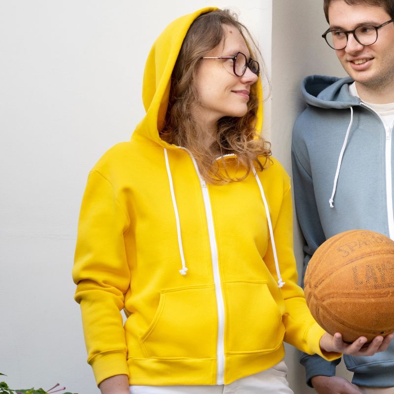 Confectionnez un sweat zippé à capuche pour femme à partir du patron SPORT, compris dans le livre Mon sweat-shirt à la carte d’Annabel Benilan.