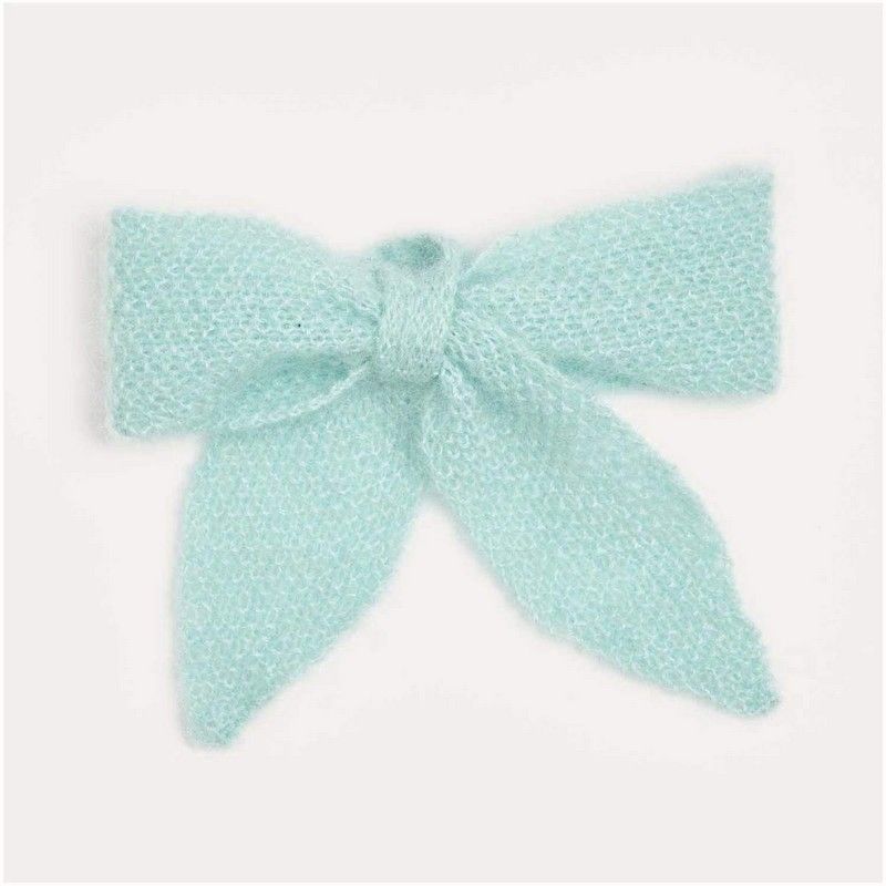 Joli noeud à tricoter au point de riz en fil double pour obtenir un ornement de cheveux de 25 x 15 cm environ.