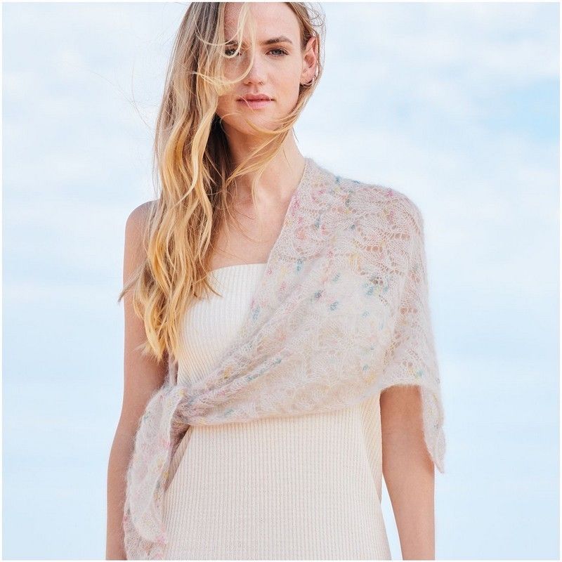 Grâce au mélange mohair-soie du fil Essentials Super Kid Mohair Loves Silk Cute Confetti, l'écharpe triangulaire avec de subtiles touches de confettis vous tiendra chaud en toute circonstance, de sorte que plus rien ne s'oppose aux longues promenades sur la plage.