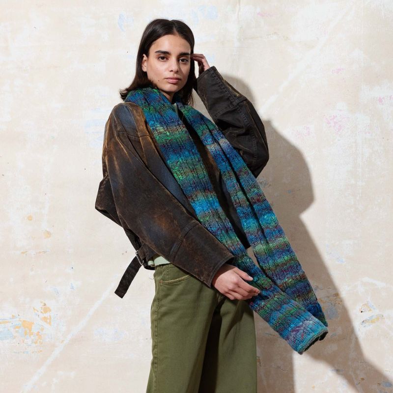 Apportez une touche de couleur et de douceur à vos tenues avec l’écharpe KALIANI, un modèle tricoté dans le fil Magnolia de Lang Yarns.