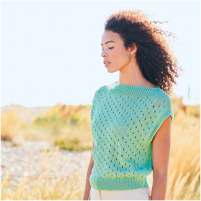 Élégant top couvrant légèrement les épaules à tricoter dans le fil Essentials cotton dk de Rico Design.