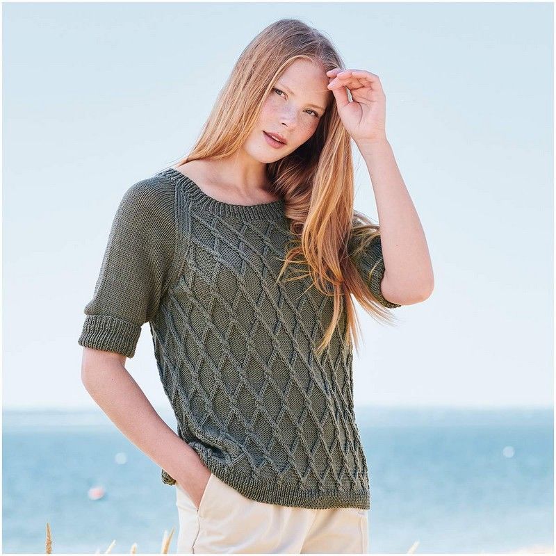 Tricotez ce joli pull léger au point torsades dans le fil Essentials cotton dk de Rico Design.