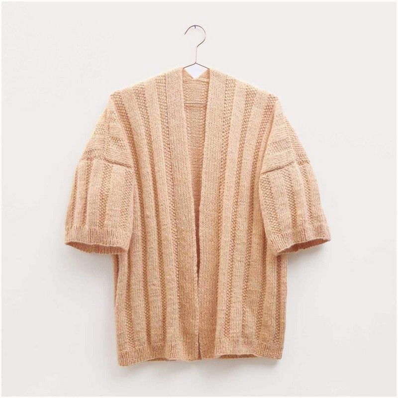 Le modèle est compris dans le magazine Made by Me n°16. Ce gilet est à tricoter en point texturé, point de riz, côtes et jersey endroit en allers-retours, avec couture des pièces à la fin. Il est accessible à un niveau débutant.